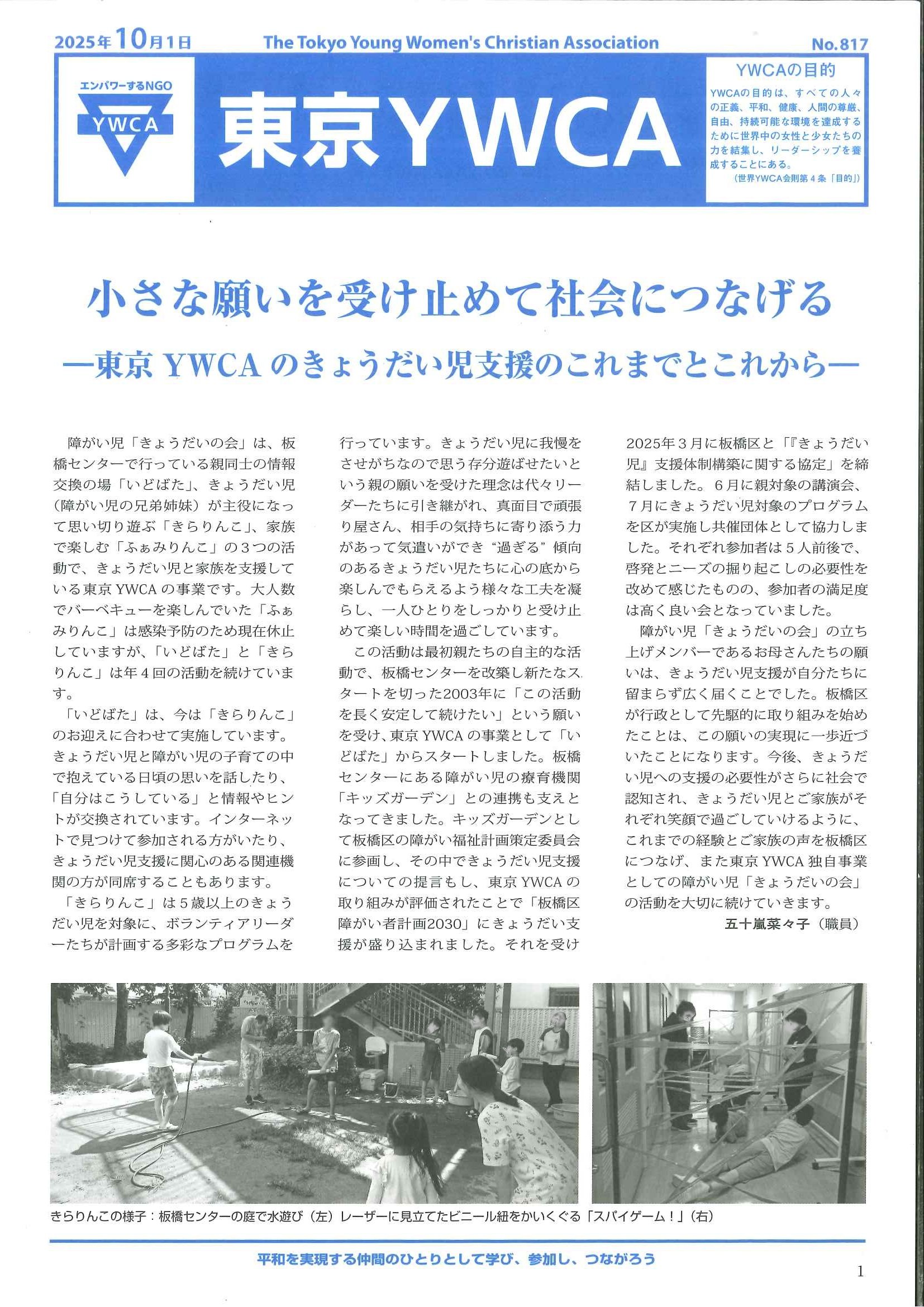 〇東京YWCA 財団広報紙『Newsletter』vol.18(2019年10月発行)