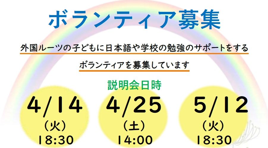 こちらのリンクのフォームにご記入・送信ください。 ■ボランティアに参加するhttps://www.tokyo.ywca.or.jp/join/volunteer.html ★コメント欄に参加希望日をご記入ください。 |